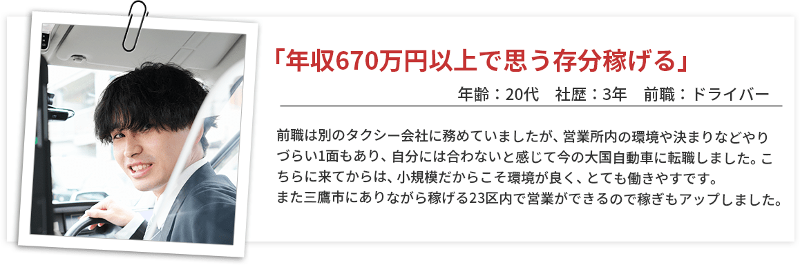 最低売上の強制や法定外残業は、国土交通省によって固く禁じられているため、一切ありません。