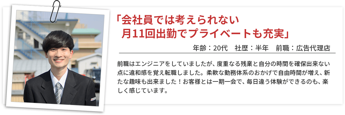 シフト制でお休みを取るので、日曜休みにすることもできます。