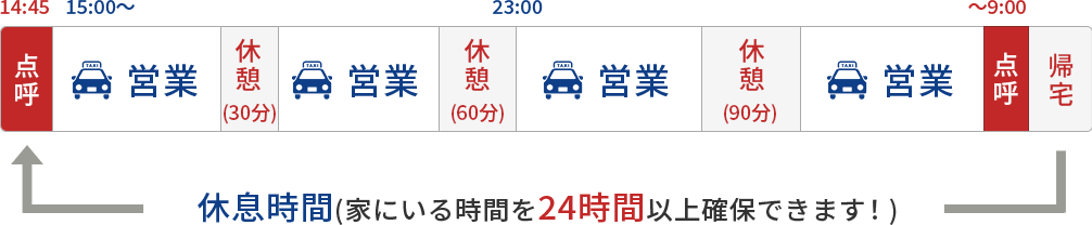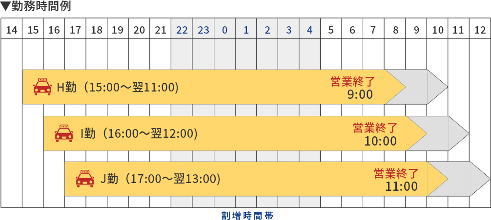 ラッシュと割増時間帯をフルに営業できる3シフト!